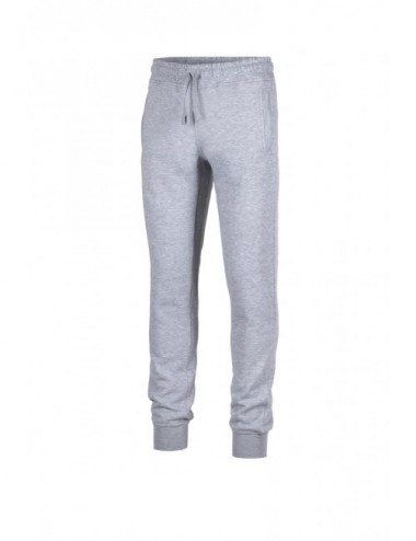 Pantalone in felpa, da uomo, vita elasticizzata con coulisse e cordino in tono. Due tasche frontali a filetto con costina e un taschino sul retro. Costina su fondo gamba.
