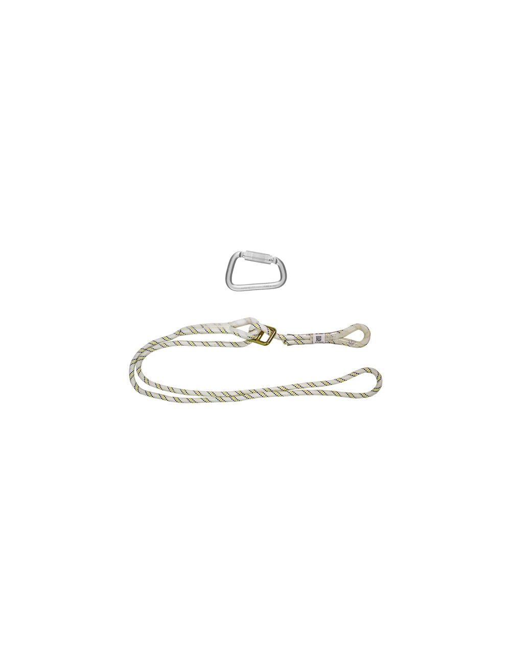 Corda semistatica con sistema di blocco regolabile per l’esecuzione dei lavori in posizionamento e in trattenuta. Estremità della corda cucite fermamente, con copertura in polietilene e redance in PVC resistenti all’abrasione. Regolabile fino ad un massimo di 2 metri. 982 Connettore asimemetrico in acciaio tropicalizzato con resistenza al test in nebbia salina di 120 ore, rispetto alle 72 ore richieste dalla norma. Chiusura 1/4 di giro. Disponibile anche nella versione con numero di serie individuale. CATEGORY EN 358:1999 EN 362:2004 B